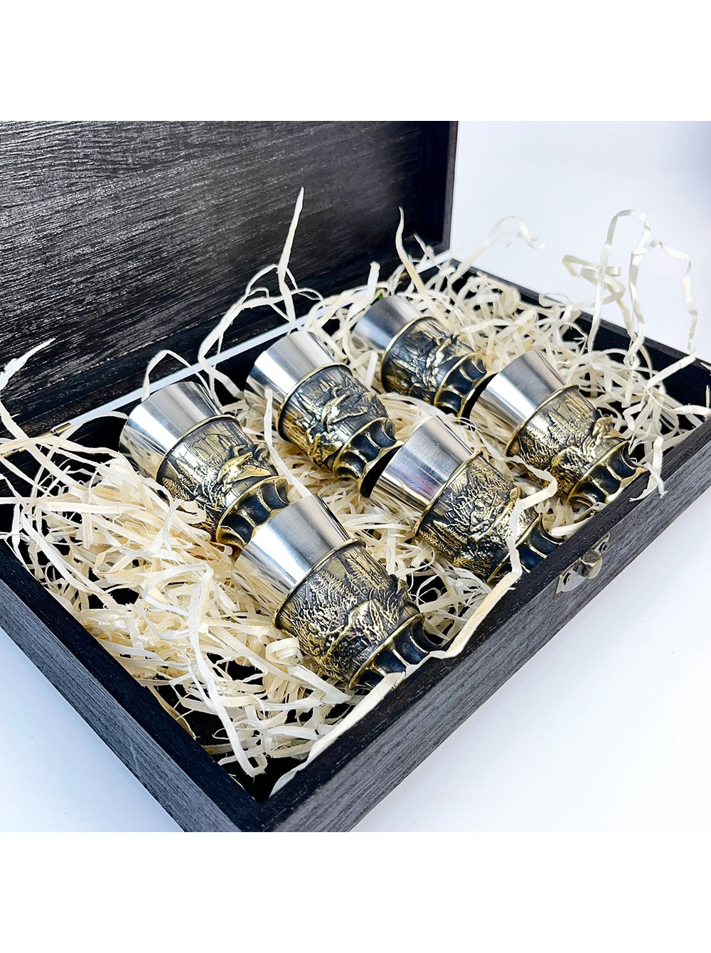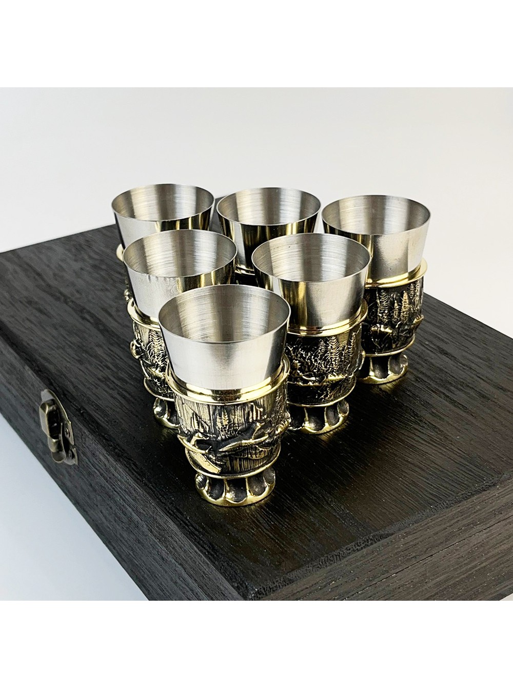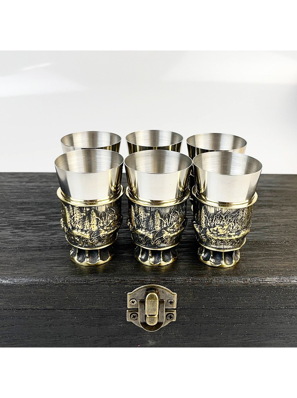 Чарки авторські "Полювання", 6 шт, латунь