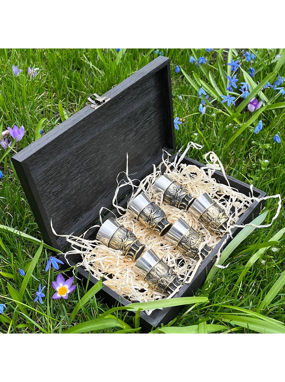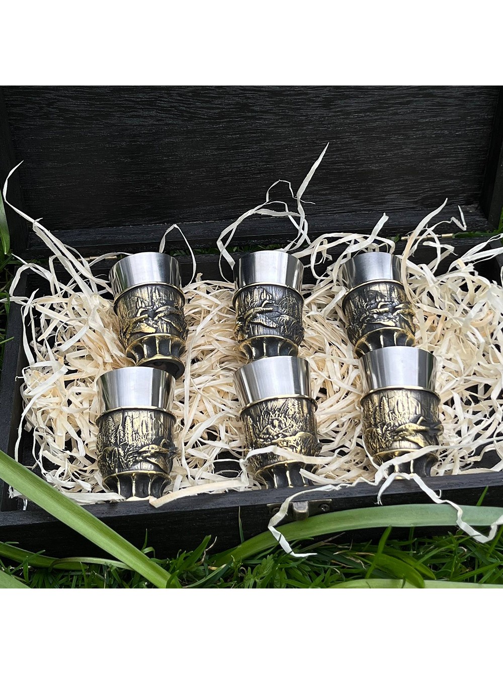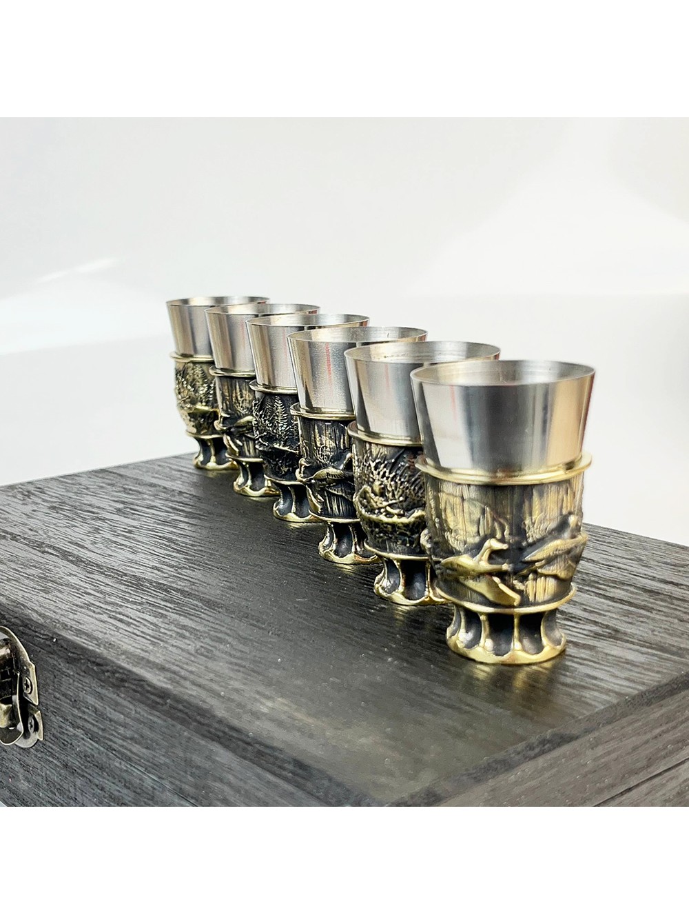 Чарки авторські "Полювання", 6 шт, латунь